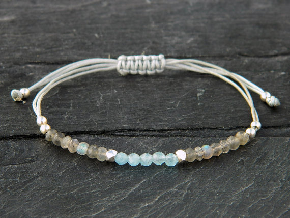 Artisan Loose 3 mm Adjustable Grey & Blue Labradorite & Aquamarine Bracelet Rondelle, Faceted 7" for mens, womens, GF, BF, Adults.
