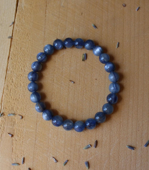 Artisan Loose 8mm Stretchable Blue Blue Kyanite Bracelet Round, Smooth 7" for mens, womens.