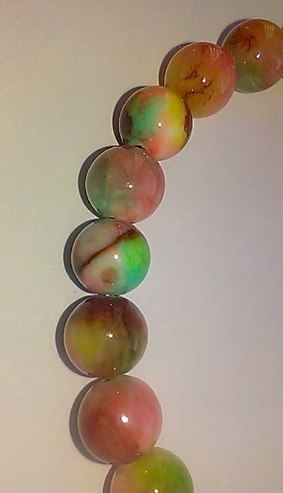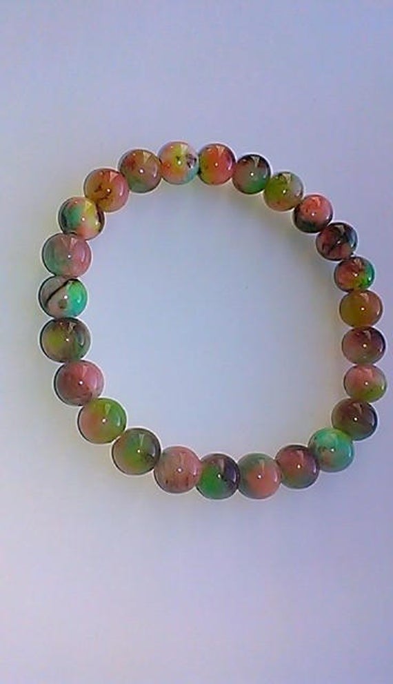 At a Great PriceArtisan Loose 8mm Stretchable Multi Mottled Jade Bracelet Round, Smooth 7" for mens, womens.