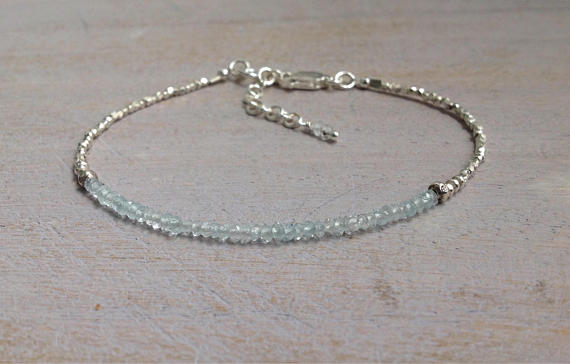 At a Great PriceBeaded Bracelet, Aqua Marine, Delicate Gemstone Womens Bracelet, Hill Tribe Silver, Solid Silver, Boho 2.8mm Code- WAR6365