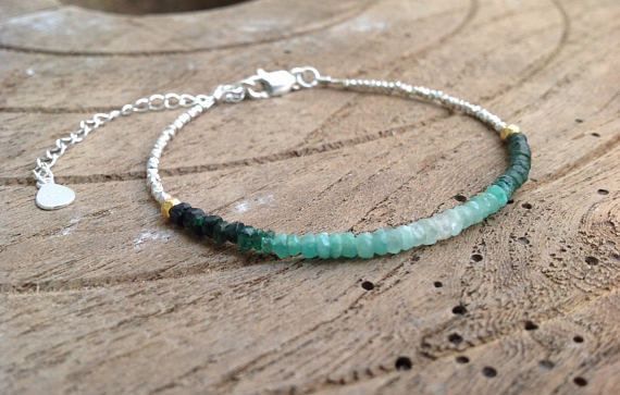 At a Great PriceBeaded Bracelet, Emerald, Green, Delicate Gemstone Womens Bracelet, Hill Tribe Silver, Solid Silver, Boho 2.2 mm Code- WAR6367
