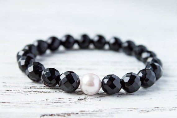 At a Great PriceBlack Faceted Beads Pastel Shaded Pearls Mother of Pearl Sister Bracelet White Sea Shell Moms Wife Gift Cousin Bracelet Girlfriend Bracelet 8mm Code- WAR9201