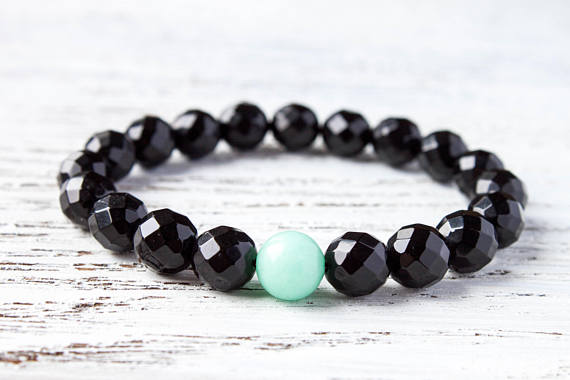 Black Mint Bracelet Mint and Black Minimalist Bracelet Girlfriend Bracelet Sister Bracelet Statement Bracelet Faceted Beads Agate Bracelet 8mm Code- WAR9192