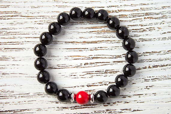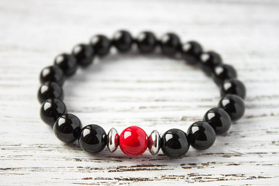 At a Great PriceBlack Red Bracelet Red Jade Bracelet Minimalist Bracelet Gift for her Girlfriend Bracelet Black Agate Bracelet Sister Bracelet Red Bracelet 8mm Code- WAR9190