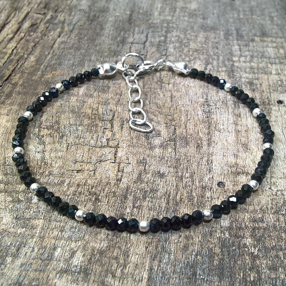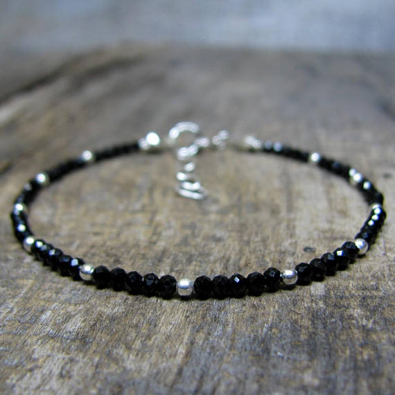 At a Great PriceBlack Silver Bracelet, Black Spinel Bracelet, Tiny Black Beaded Bracelet, Dainty Skinny Thin Bracelet, Minimalist Sterling Silver Bracelet 2.5mm Code- WAR6596
