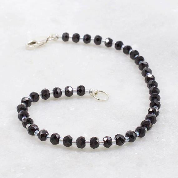 At a Great PriceBlack Spinel Bracelet, Black Spinel, Bracelet, Black Spinel Bead Bracelet 3.5mm Code- WAR6560
