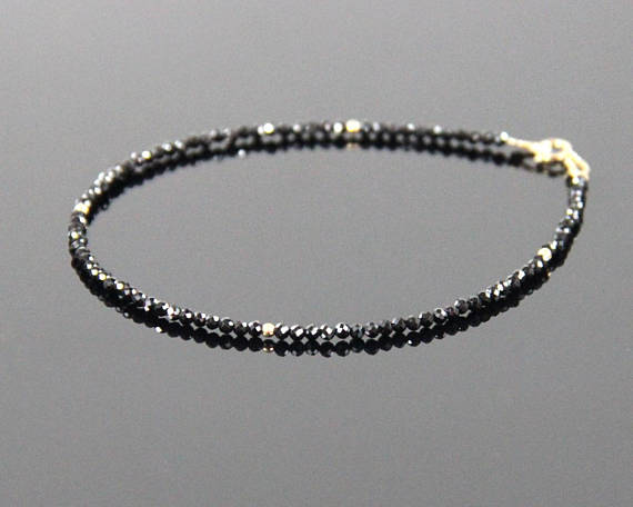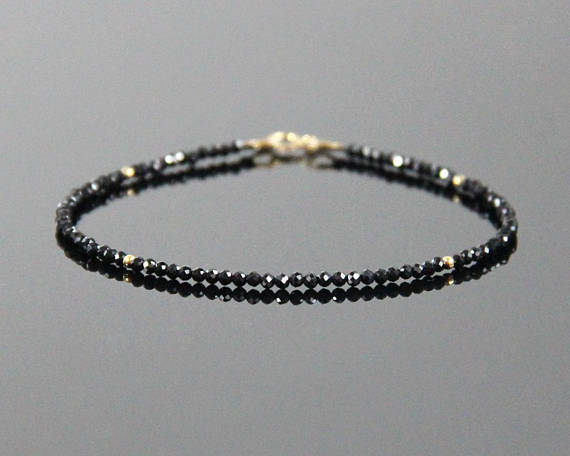 Black Spinel Gold Bracelet - Black Gemstone Bracelet, Black Bead Bracelet, Spinel Bracelet, Gemstone Stacking Bracelet, Beaded Bracelet 2.4mm Code- WAR6093