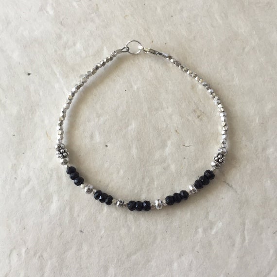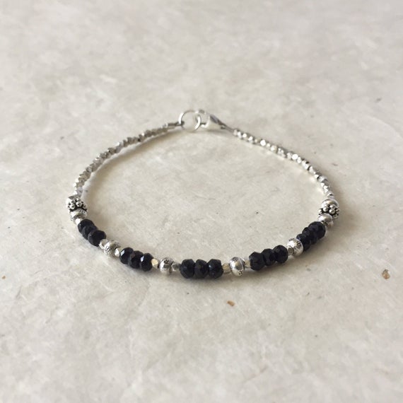 Black Spinel Karen Hill Tribe Thai Silver Beaded Bracelet, Sundance Style, Boho Stacking Bracelet, Birthday Gift, Gifts for Her 3-4mm Code- WAR6410