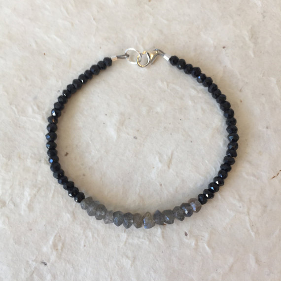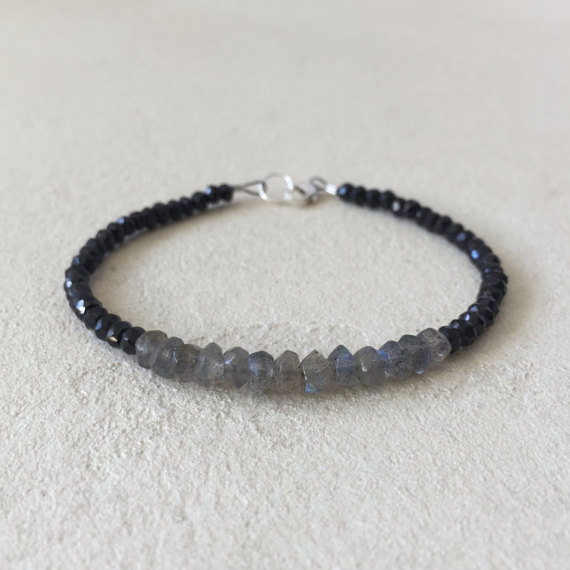 At a Great PriceBlack Spinel Labradorite Sterling Silver Beaded Bracelet, Sundance Style, Boho Stack Bracelet, Boho Chic, Layering Bracelet, Gifts for Her 3-5mm Code- WAR6380