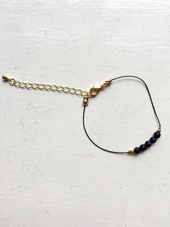 At a Great PriceBLUE GOLDSTONE gemstone bead friendship bracelet. dainty bracelet - beaded bracelet - minimal bracelet - bead bar bracelet - gemstone blue 4mm Code- WAR9076