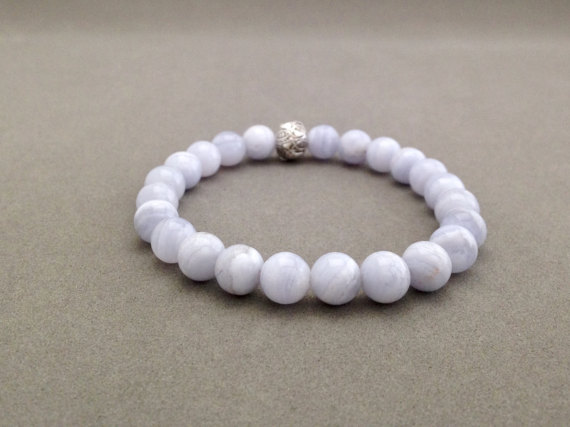 At a Great PriceBlue Lace Agate and Karen Hill Tribe Stretch Bead Bracelet for Improved Communication, Stress Relief, Easing Old Resentments 8mm Code- WAR6193