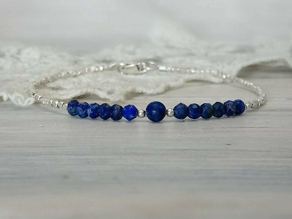 At a Great PriceBlue Lapis Lazuli and Karen Hill Silver Beads Bracelet, Royal Blue Lapis Gemstone Bracelet, 2-4mm Code- WAR6660