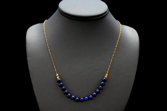 At a Great PriceBlue Lapis Necklace/ Gold Lapis Necklace/ Lapis Lazuli Gold/ Gold Blue Necklace/ Blue Chain Necklace 3-6mm Code- WAR9064