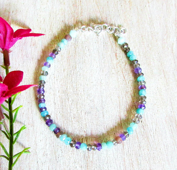 At a Great PriceBlue Purple stone Bracelet, Amazonite Amethyst quartz, Colorful Stone, Ombre Stone, Romantic, stone beaded bracelet, dainty stacking 3.5-4 mm Code- WAR6751