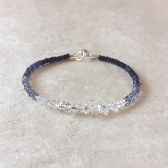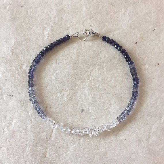At a Great PriceBlue Sapphire Iolite Moonstone Herkimer Diamond Sterling Silver Beaded Bracelet, Sundance Style, Dainty Bracelet, Layering Bracelet Code- WAR6465