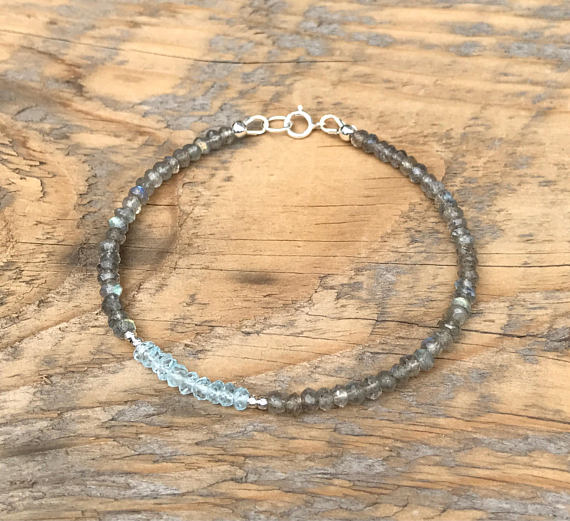 At a Great PriceBlue Topez and Labradorite Bracelet-Flashing Blue Labradorite -Energy Healing Gemstones - Sterling Silver- Boho- Stacking- Aura 3 - 3.5 mm Code- WAR6784