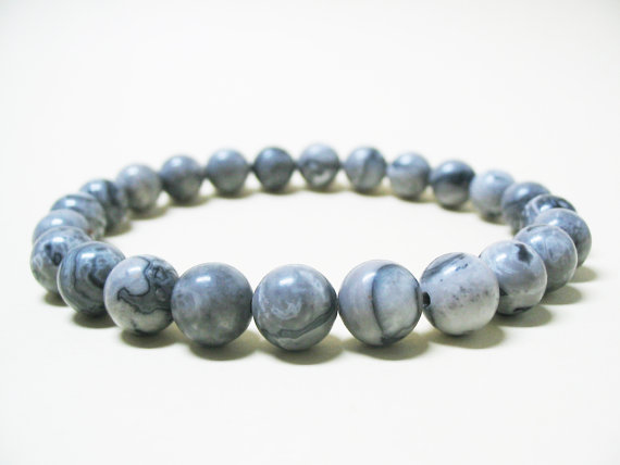 At a Great PriceBlush Jewelry 8mm Stretchable black Picture Jasper Bracelet Round, Smooth 7" for mens, womens, GF, BF, Adults.