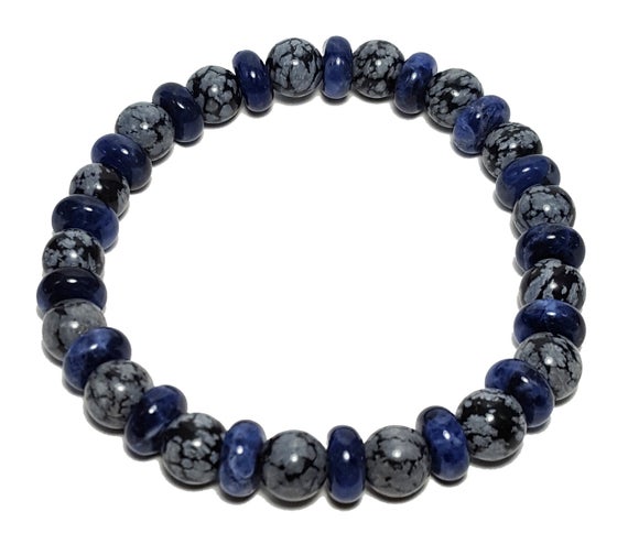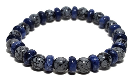 At a Great PriceBlush Jewelry 8mm Stretchable blue Snowflake Obsidian & Lapis Lazuli Bracelet Round & Rondelle, Smooth 7" for mens, womens, GF, BF, Adults.