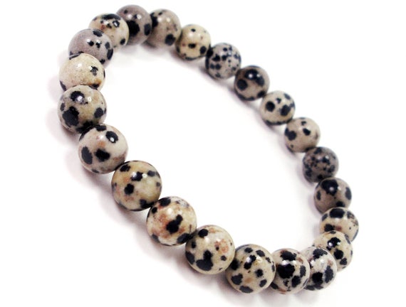 Blush Jewelry 8mm Stretchable Multi Dalmatian Jasper Bracelet Round, Smooth 7" for mens, womens.