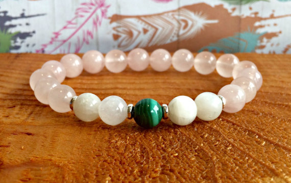 At a Great PriceBlush Jewelry 8mm Stretchable Multi Rose Quartz, Moonstone & Malachite Bracelet Round, Smooth 7" for mens, womens, gf, bf & Adult.
