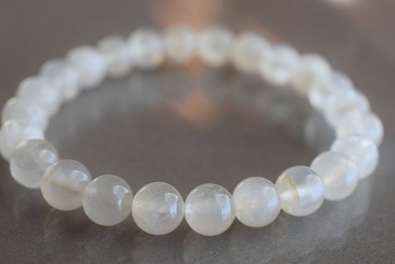 At a Great PriceBlush Jewelry 8mm Stretchable White Moonstone Bracelet Round, Smooth 7" for mens, womens.