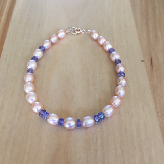 At a Great PriceBlush pearls, fresh water pearls, natural pearls, natural tanzanite, bridal jewelry, wedding bracelet, 14 karat rose gold, anniversary gift 3mm Code- WAR6320