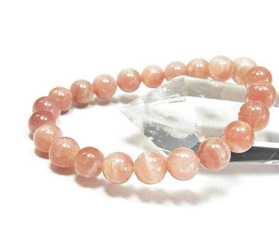 At a Great PriceBridesmaid Jewelry 10mm Pink Sunstone Stretchable Bracelet Round, Smooth 18cm for mens, womens, gf, bf and adults.