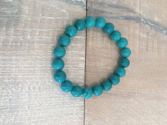 At a Great PriceBridesmaid Jewelry 10mm Stretchable Blue Blue Turquoise Bracelet Round, Smooth 7.5" for mens, womens, gf, bf & Adult.