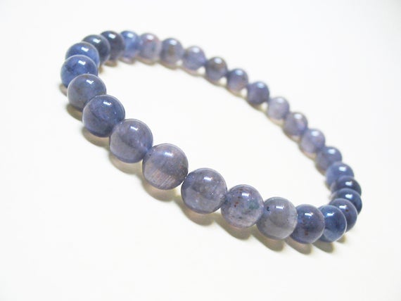 At a Great PriceBridesmaid Jewelry 6mm Stretchable blue Iolite Bracelet Round, Smooth 7" for mens, womens, GF, BF, Adults.
