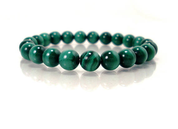 Bridesmaid Jewelry 8mm Stretchable Green Natural Malachite Bracelet Round, Smooth 7" for mens, womens.