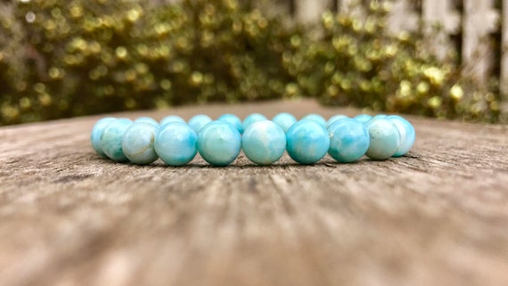 At a Great PriceBridesmaid Jewelry 8mm Stretchable Sky Blue Larimar Bracelet Round, Smooth 7" for mens, womens, gf, bf & Adult.