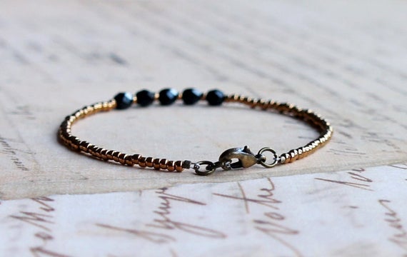 At a Great PriceBronze And Black Bracelet, Seed Bead Bracelet, Czech Glass Bracelet, Beaded Bracelet, Minimalist Bracelet, Dainty Bracelet, Simple Bracelet 3-5mm Code- WAR9125