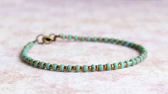 At a Great PriceBronze And Turquoise Bracelet, Seed Bead Bracelet, Stacking Bracelet, Simple Bracelet, Beaded Bracelet, Minimalist Bracelet, Dainty Bracelet 2-3MM Code- WAR9113