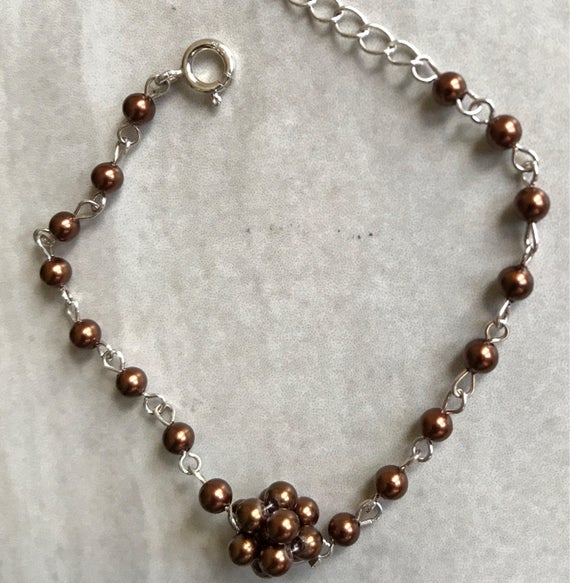 At a Great PriceBrown shell Pearl seni Precious Gemstone Cluster Tennis 925 sterling silver Bracelet 4mm Code- WAR6620