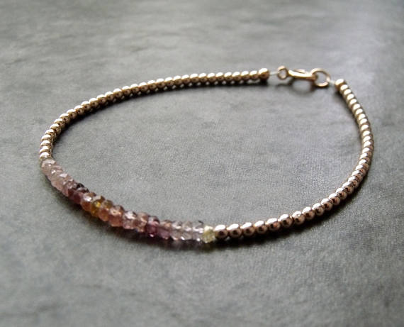 At a Great PriceBurmese Multi Coloured Faceted Spinel with Rose Gold Sterling Silver Beads Dainty Stacking Bracelet 3 mm Code- WAR6507