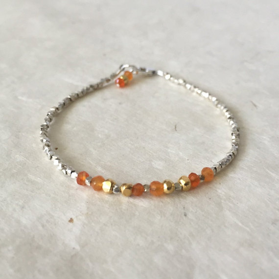 At a Great PriceCarnelian Karen Hill Tribe Thai Gold and Silver Beaded Bracelet, Sundance Style, Boho Stacking Bracelet, Layering Bracelet 3-4mm Code- WAR6444