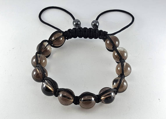 At a Great Pricechakras simple 10mm Adjustable Brown Natural Smoky Quartz Bracelet Round, Smooth 7.5" for mens, womens.