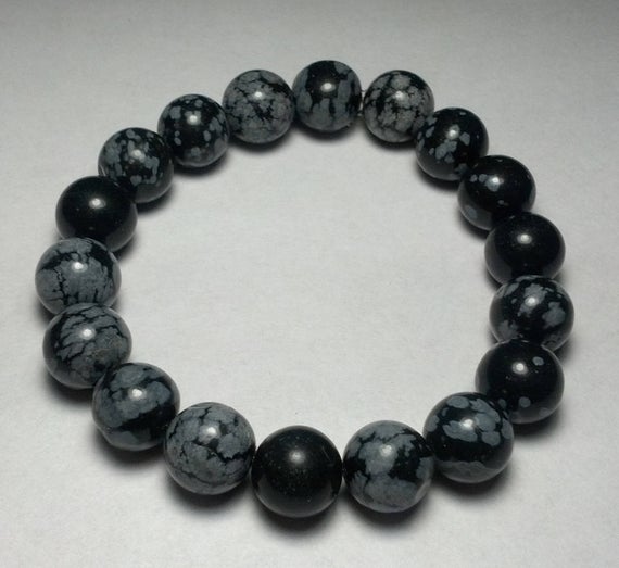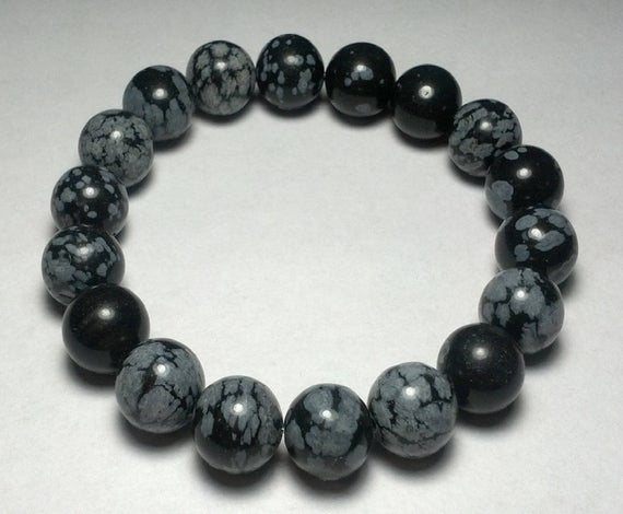 chakras simple 10mm Multi Colour Snowflake Obsidian Stretchable Bracelet Round, Smooth 18cm for mens, womens, gf, bf and adults.