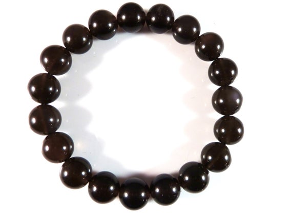 At a Great Pricechakras simple 10mm Stretchable Black Black Obsidian Bracelet Round, Smooth 7.5" for mens, womens, gf, bf & Adult.
