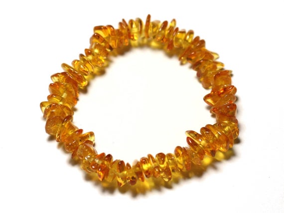 chakras simple 5-8mm Stretchable Yellow honey amber Bracelet Chips, Smooth 7" for mens, womens, gf, bf & Adult.