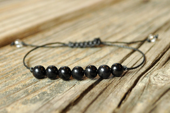 At a Great Pricechakras simple 6mm adjustable black Black Tourmaline Bracelet Round, Smooth 7" for mens, womens, GF, BF, Adults.