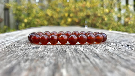 At a Great Pricechakras simple 8mm Stretchable Red Amber Bracelet Round, Smooth 7" for mens, womens, gf, bf & Adult.