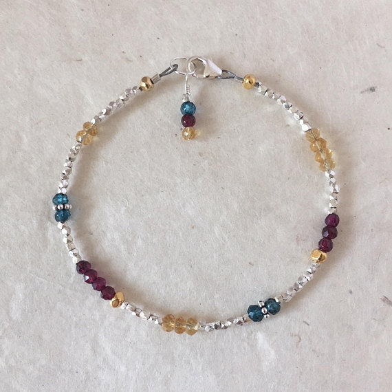 At a Great PriceCitrine Garnet London Blue Quartz Karen Hill Tribe Thai Silver & Gold Beaded Stacking Bracelet, Sundance Style, Boho Chic, Dainty Bracelet 2-4mm Code- WAR6375