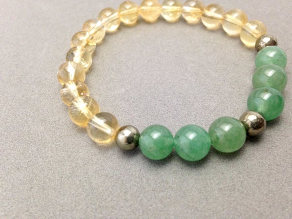 At a Great PriceCitrine, Green Aventurine and Pyrite Combination Stretch Bead Bracelet for Good Luck 6-8mm Code- WAR6185