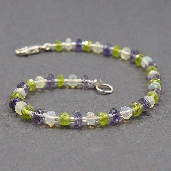 At a Great PriceConfidence Bracelet, Green Blue, Bracelet, Iolite, Vesuvianite, Opal, Energy Layer Delicate, Gift for Her, Gift for Women, Gift for Wife 3.5mm Code- WAR6534