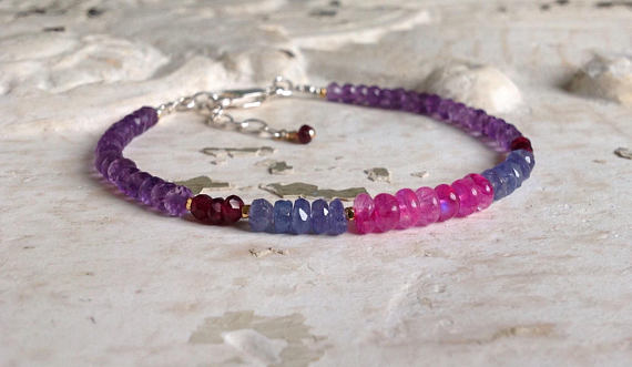 Dainty Bracelet, Moon Stone, Tanzanite, Rhodolite Garnet, Multiple Stones, Karen Hill silver plated 24K gold, Solid Silver, Bohemian Chic 3.5 to 4 mm Code- WAR6358