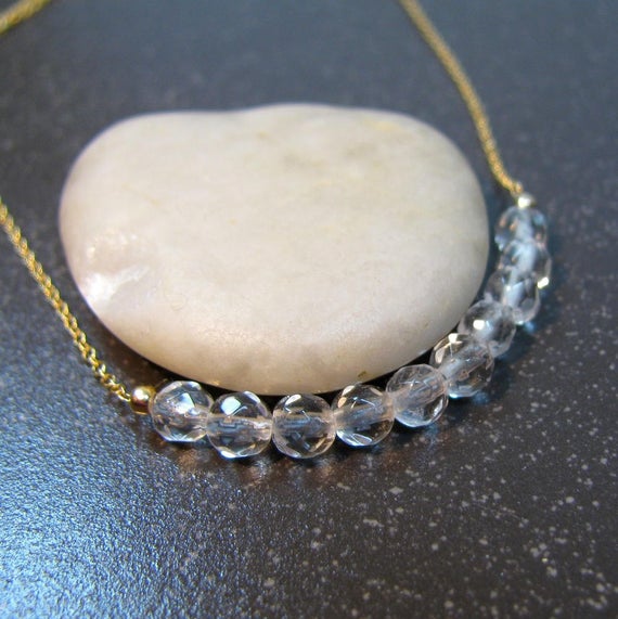 Dainty Gold Necklace, Delicate Gold Necklace, Gold Filled Necklace, Dainty Gemstone Bar Necklace, Clear Quartz Necklace, Minimalist Necklace 4mm Code- WAR6610