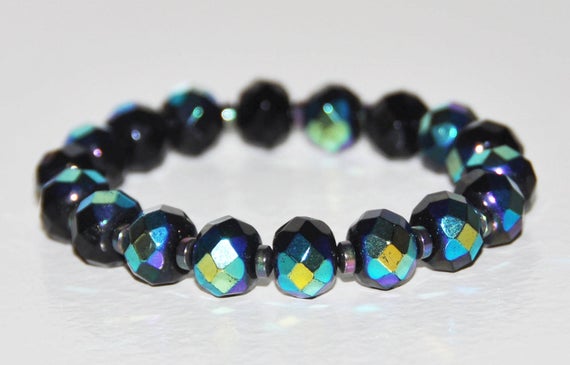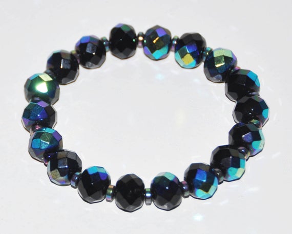At a Great PriceDainty Slave Loose 12mm Multi Colour Rainbow Hematite, Czech Crystal Stretchable Bracelet Round, Faceted 18cm for mens, womens, gf, bf and adults.