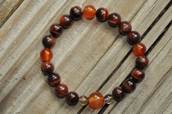 At a Great PriceDainty Slave Loose 6mm Stretchable red Tiger Eye Bracelet, Smoky Quartz Bracelet Round, Smooth 7" for mens, womens, GF, BF, Adults.