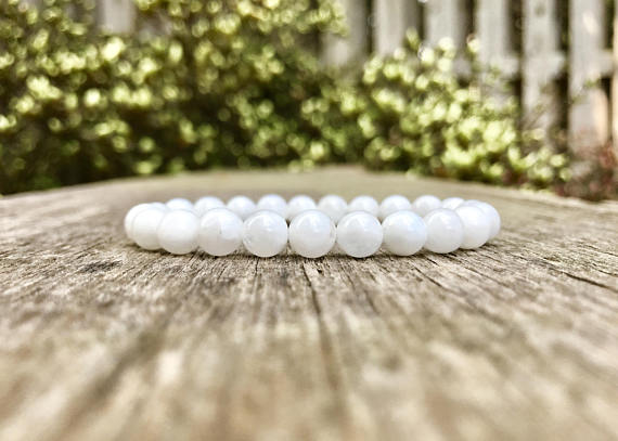 At a Great PriceDainty Slave Loose 7mm Stretchable White White Moonstone Bracelet Round, Smooth 7" for mens, womens, gf, bf & Adult.
